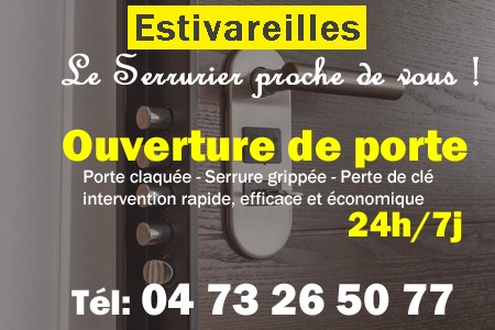 Besoin d’un serrurier en urgence à Estivareilles ? Notre serrurier se déplace à votre domicile ou à votre magasin en moins d’une demi-heure 7 jours sur 7 de jour comme de nuit 24h/24, nous sommes ouvert le dimanche.