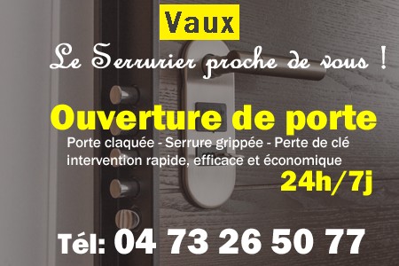 Besoin d’un serrurier en urgence à Vaux ? Notre serrurier se déplace à votre domicile ou à votre magasin en moins d’une demi-heure 7 jours sur 7 de jour comme de nuit 24h/24, nous sommes ouvert le dimanche.