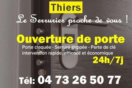 Si vous n'avez pas réussi à ouvrir votre porte par vos propres moyens, vous pouvez appeler nos artisans serruriers à Thiers qui sont disponibles 24h/7j et interviennent en général en 30min.