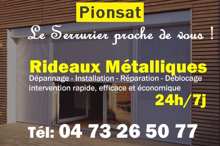 Nous mettons à votre disposition nos artisans qualifiés rideaux métallqiues à Pionsat, disponibles 24h/24 et tous les jours, n’hésitez pas à nous contacter pour une installation ou un dépannage.