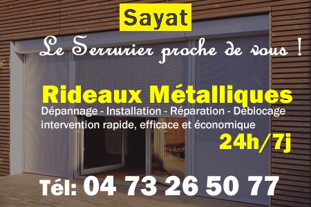mailPour installer ou réparer vos rideaux métalliques à Sayat, appelez-nous directement.